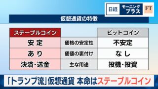 暗号 「トランプ流」仮想通貨 本命はステーブルコイン【日経モープラFT】